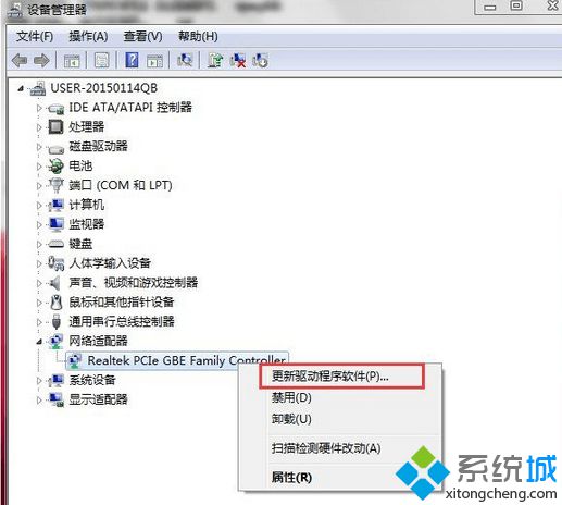 第三个原因是网卡驱动损坏,可以到“设备管理器”看看,看网卡上是不带有黄色警示标志,如果有,那是网卡驱动被损坏了,必须重头更新网卡驱动。