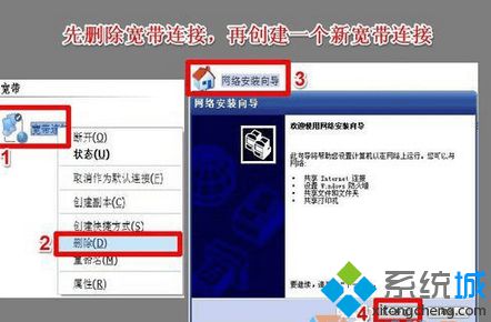 第六个办法是,将“宽带连接”删除,然后再重头建立一个新的“宽带连接”,这样大多都能处理问题。