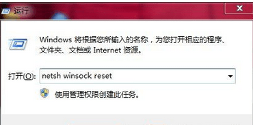 采用命令提示符修复办法,修复winsock 和TCp/ip。“开始-》运行-》键入 netsh winsock reset -》 按Enter( 回车),当命令提示符窗口闪烁过后,重启电脑便可。