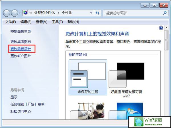2、在出现的窗口中,点击“更改鼠标指针”选项;