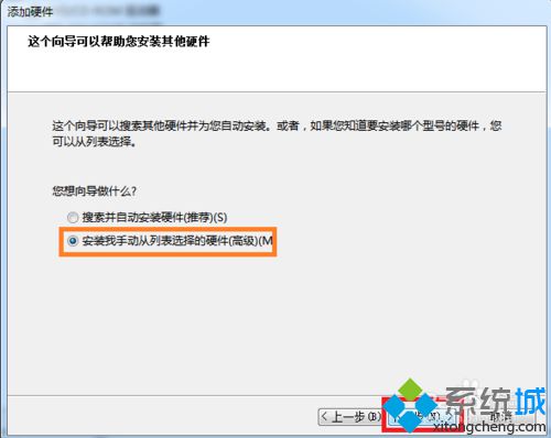 4、在接下来的硬件向导中选中【安装我...】,然后直接下一步;